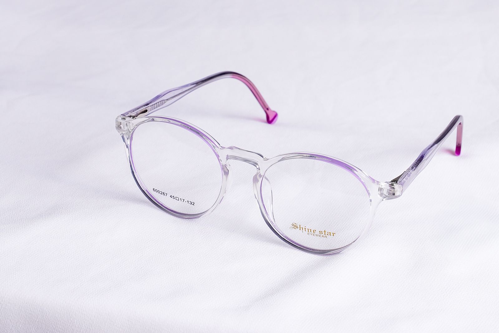 Monture violette, embouts rose foncé — une touche pastel pour un regard lumineux